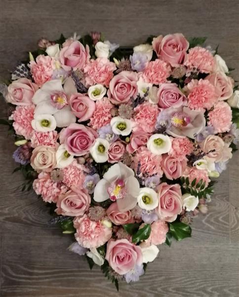 This striking heart is created using a combination of seasonal blooms & foliage. Flowers can vary depending on season.